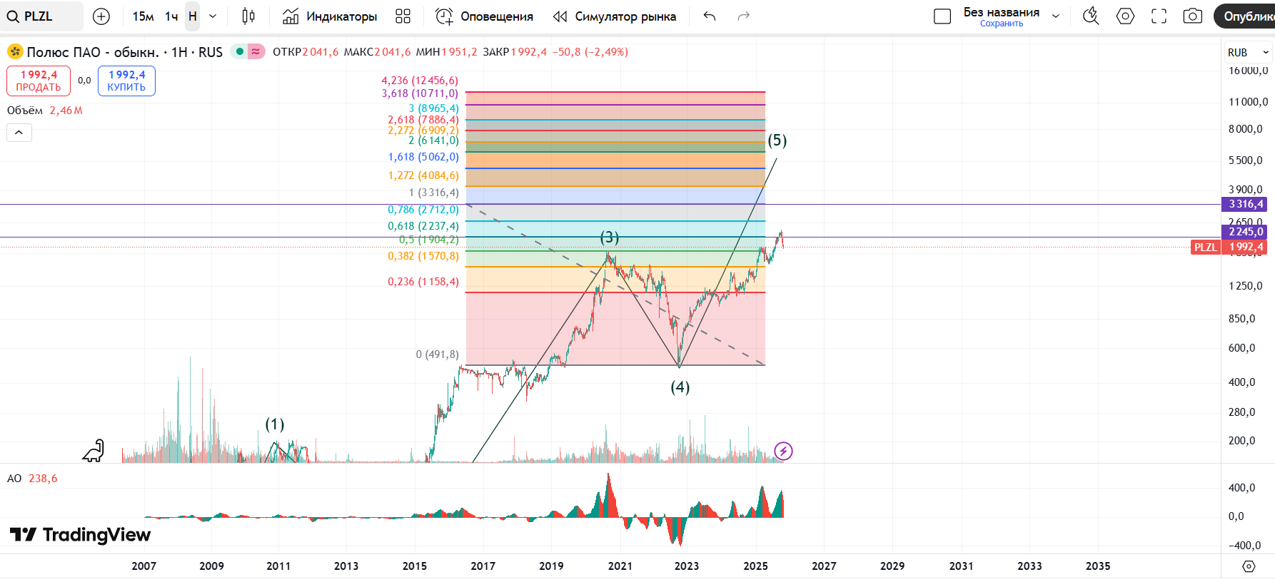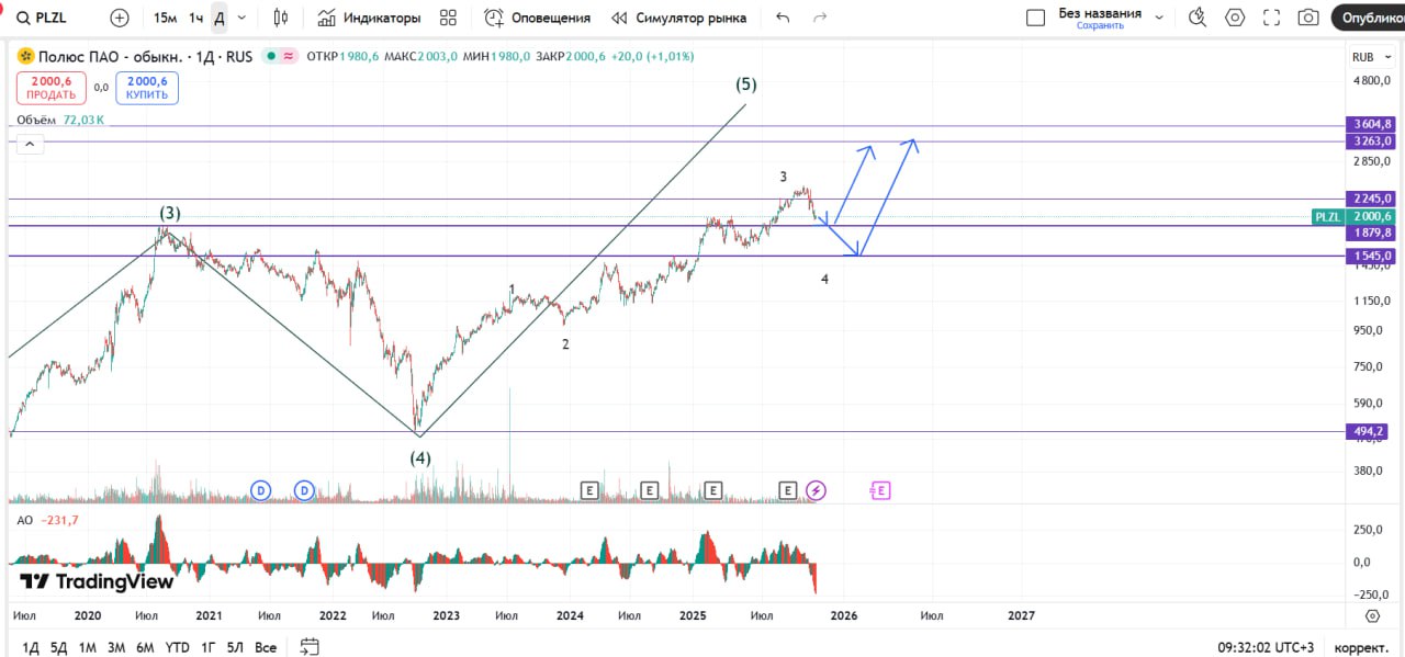 А дальше возобновления роста. И цели этого роста - 3200, 3600. Поэтому если Вы уже инвестировали в Полюс Золото, и сделали это в районе 1100-1500 я бы точно не спешила закрывать позицию.